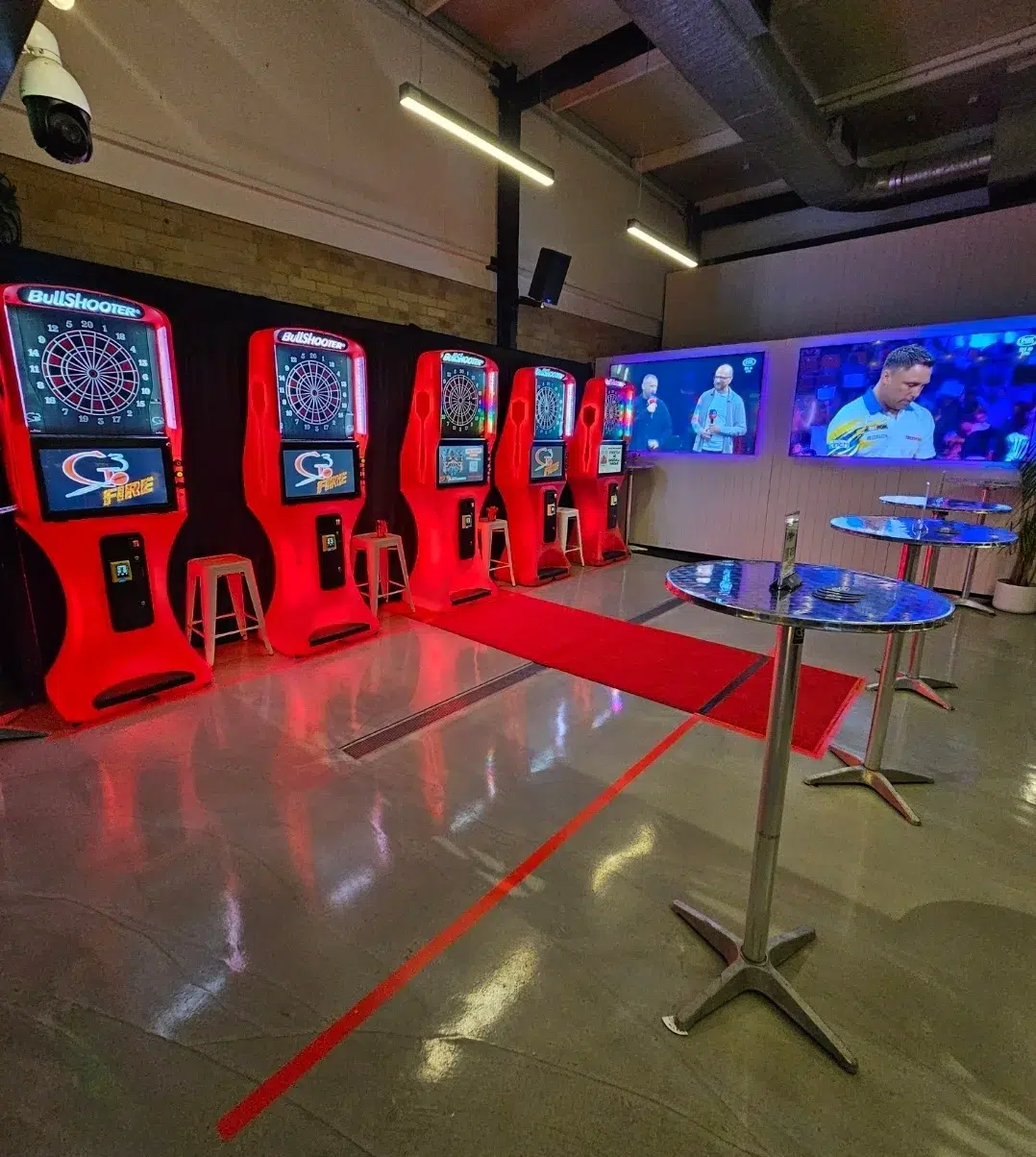 If you’re looking to add some visual flair and interactive fun. Hire the eye pleasing VDARTS 3L or our BullShooter bright red FIRE Electronic Dart boards. With self scoring, drinking games, 501, cricket and more classic games. Experience the VDarts 3L &or Bullshooter Fire and hire hours of fun.